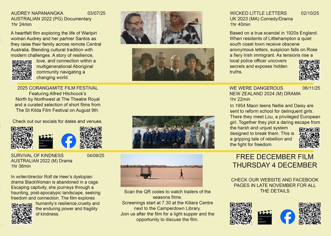 All ‘Thursday Pictures’ screenings start at 7.30pm at the Killara Centre in Camperdown. $10 entry for guests or $30 for a 3 x film membership subscription. The entry fee includes supper and refreshments after the screening.